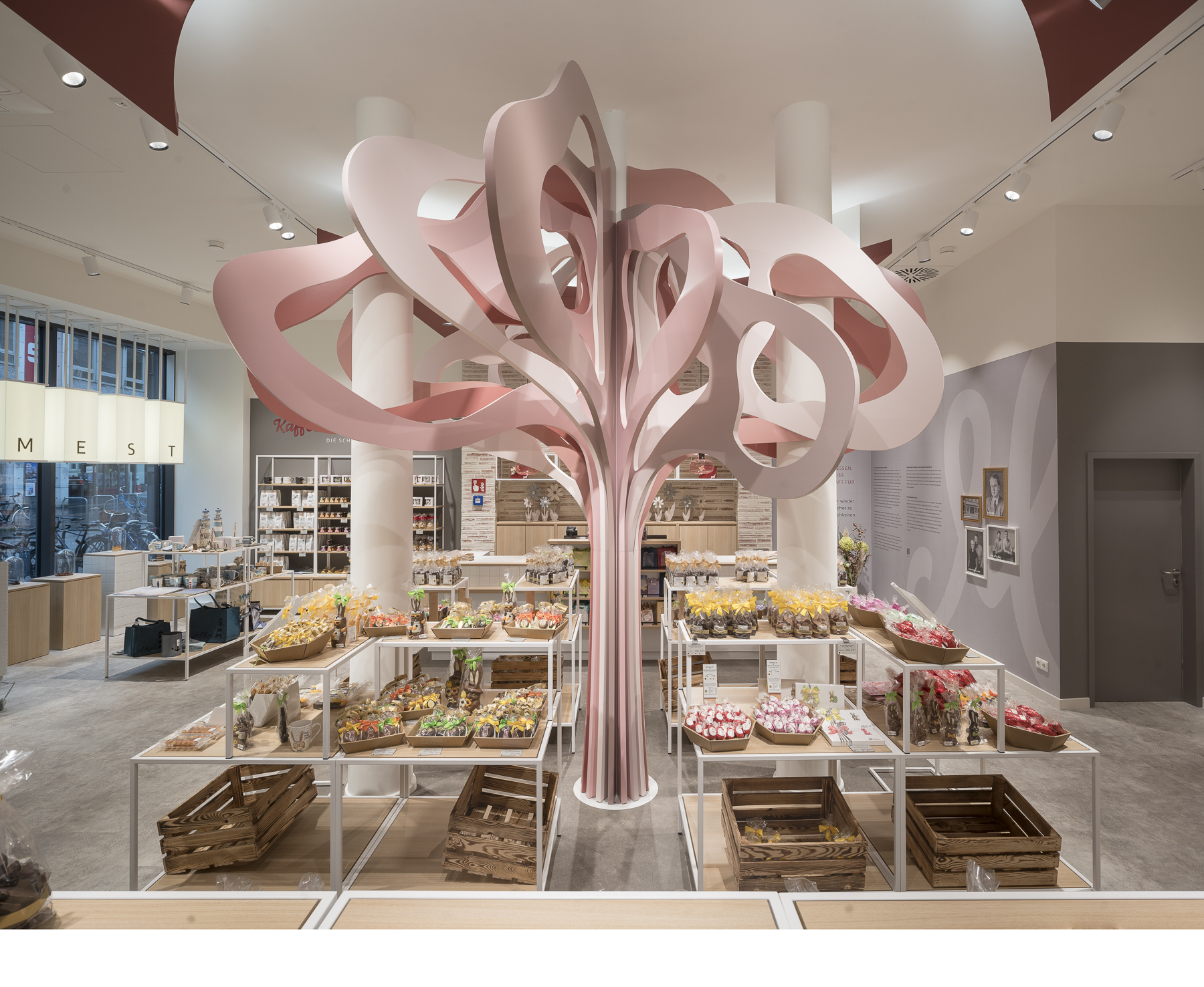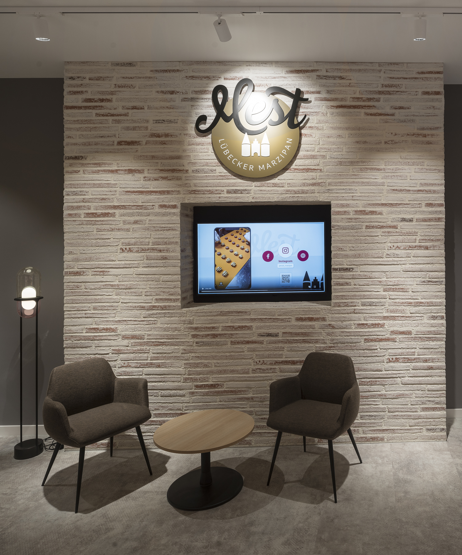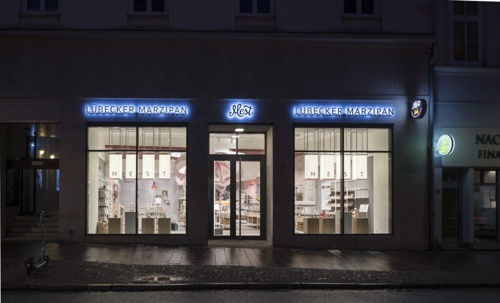 Für den neuen Concept Store setzten wir die Eingangsfassade und den Innenausbau mit großer Sorgfalt und Präzision um. So entstand ein harmonisches Raumkonzept, in dem zarte Rosétöne, natürliche Materialien und historische Strukturen Tradition und Moderne verbinden – und die Welt des Marzipans sinnlich erlebbar machen.